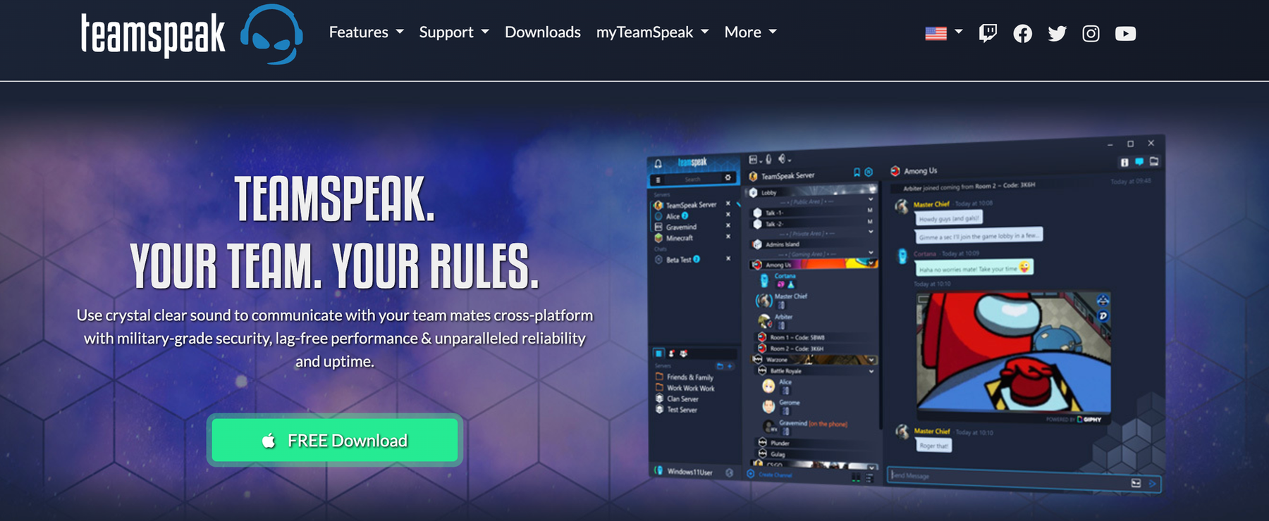 has been around forever for a reason. It offers ultra-low latency voice chat with incredibly granular permission controls, and it's self-hosted, meaning you own your server environment. Professional esports organizations have used it for years. If crystal-clear voice and server control are your priorities, TeamSpeak still holds up. The tradeoff is that it's primarily a voice tool — text and community features are secondary compared to Discord.