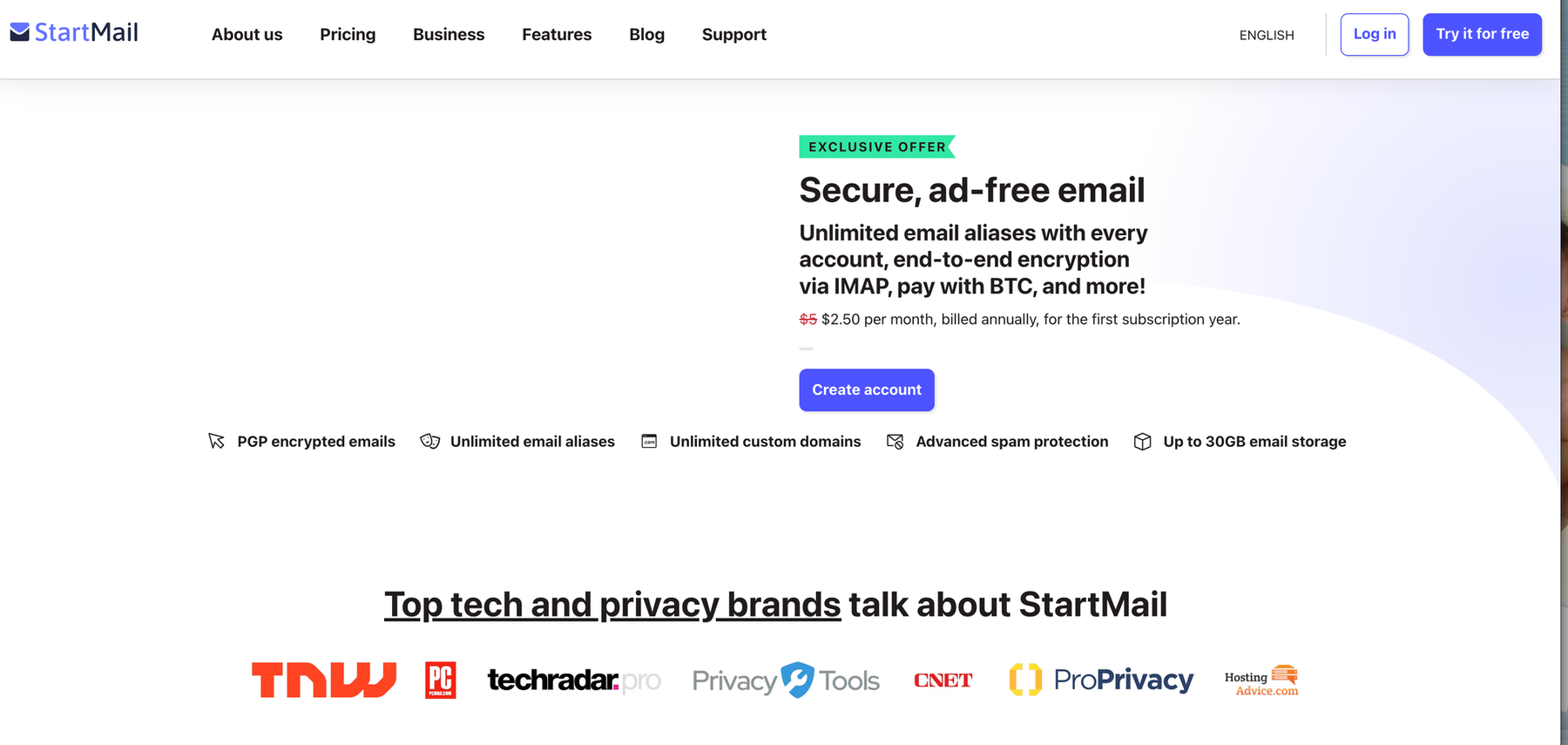 Privacy-focused email from the creators of the StartPage search engine. It offers temporary email addresses and encryption features for users who want privacy without technical complexity.