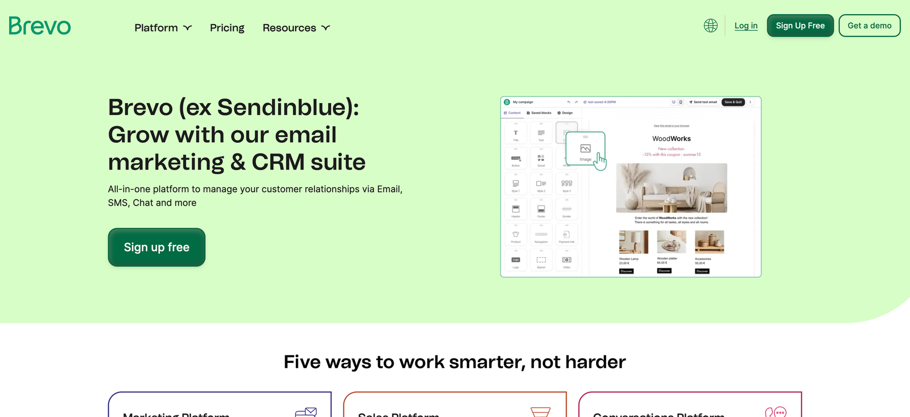 Brevo is interesting because it lets you do both email and SMS marketing from the same place. That's useful if you want to reach subscribers through more than one channel.