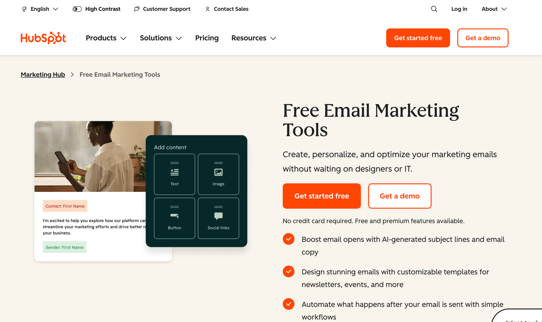 HubSpot has a free plan that lets you send up to 2,000 emails a month for basic email marketing. The paid plans, on the other hand, get expensive quickly. They start at $15 per month and go up to thousands of dollars per month for business features.